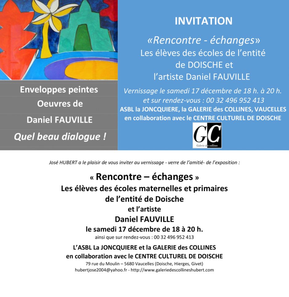 Vernissage de l’exposition « Rencontres – échanges » le 17 décembre Publié parCentre culturel de Doische9 décembre 20169 décembre 2016Publié dansCentre culturel, ExpositionsÉtiquettes :ASBL La Joncquière, Daniel Fauville, Exposition, Galerie des Collines, Vaucelles J’aime chargement… Sur le même thème