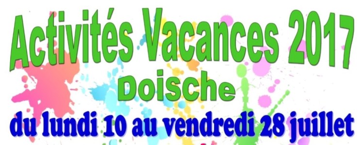 Les documents d’inscriptions ainsi que le règlement d’ordre intérieur des activités vacances sont disponibles, dès à présent, au Foyer culturel ou à la commune de Doische. Vous pouvez également télécharger ces documents en format .pdf ci dessous.