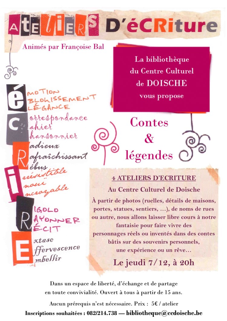 Atelier d’écriture le 7 décembre Publié parCentre culturel de Doische1 décembre 2017Publié dansBibliothèque J’aime chargement… Sur le même thème