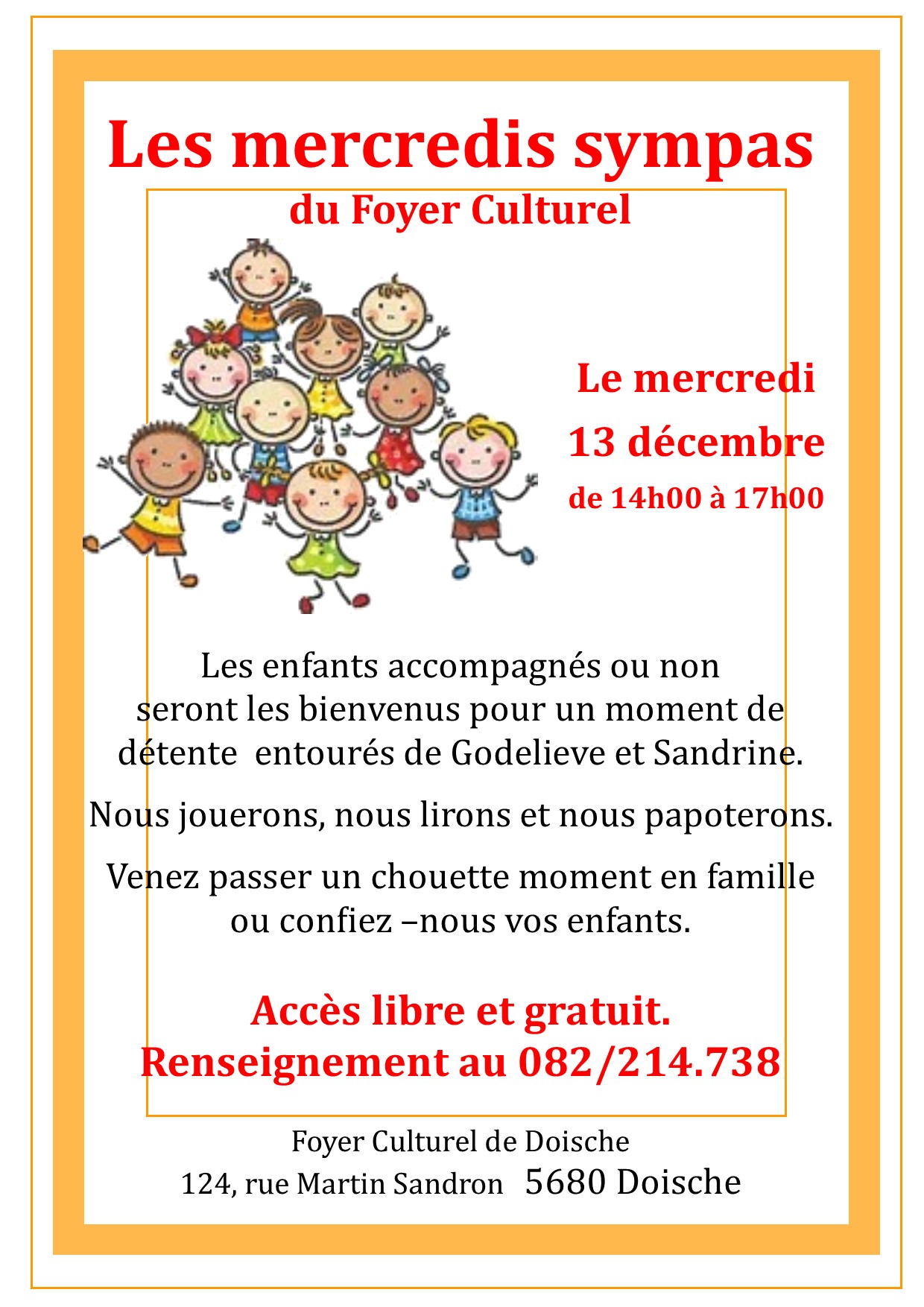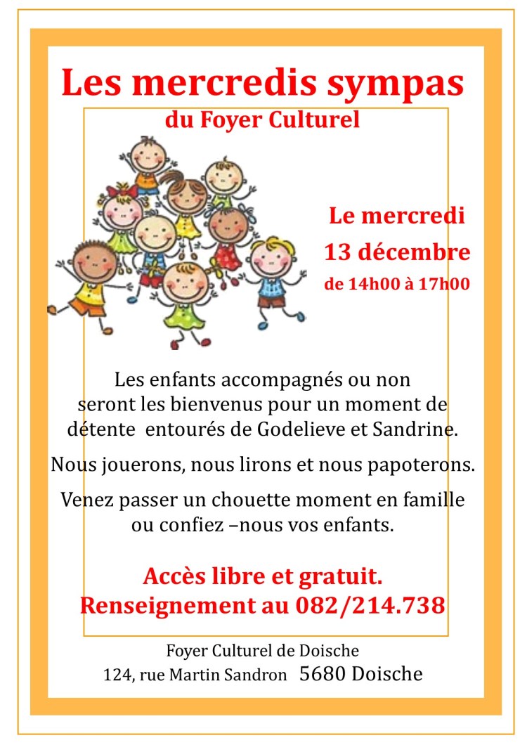 Les mercredis sympas du Foyer culturel… le 13 décembre Publié parCentre culturel de Doische1 décembre 2017Publié dansAccueil Temps Libre, Bibliothèque, Centre culturel, Ludothèque J’aime chargement… Sur le même thème