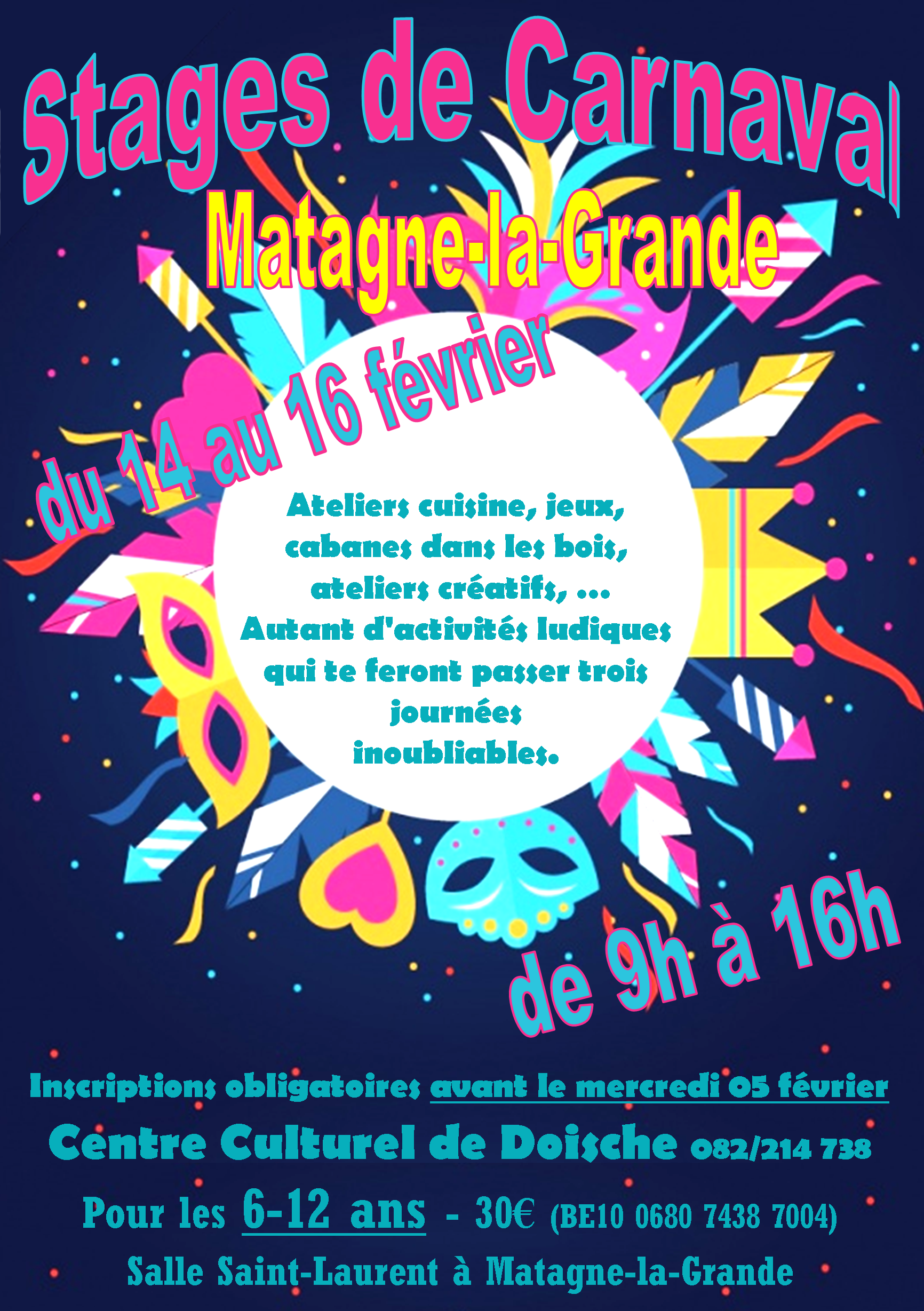 Stage de Carnaval 2018 Publié parCentre culturel de Doische12 janvier 2018Publié dansAnimations, Évènements, Stages & Ateliers, Centre culturel J’aime chargement… Sur le même thème