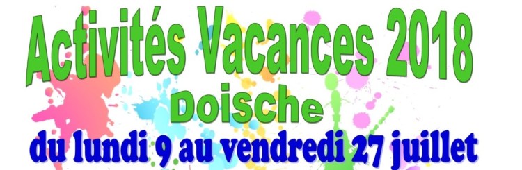 Les documents d’inscriptions ainsi que le règlement d’ordre intérieur des activités vacances sont disponibles, dès à présent, au Foyer culturel ou à la commune de Doische. Vous pouvez également télécharger ces documents en format .pdf ci dessous.