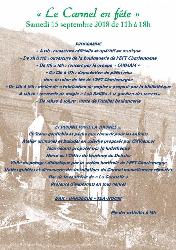Le Carmel en Fête Publié parscopienne22 août 201829 août 2018Publié dansAnimations, Évènements, Stages & Ateliers J’aime chargement… Sur le même thème Publié par scopienne Bibliothécaire-animatrice à la bibliothèque "Livre-Choix" du Foyer culturel de Doische Voir plus d’articles