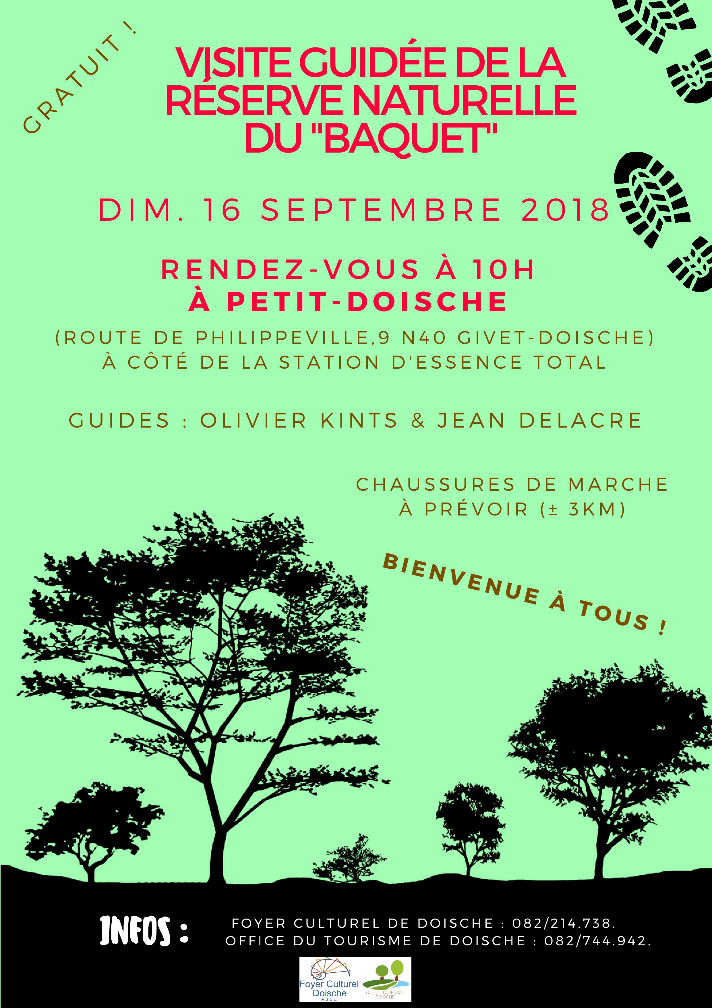 Visite de la réserve naturelle du Baquet (16 septembre 2018) Publié parscopienne27 août 201829 août 2018Publié dansAnimations, Évènements, Stages & Ateliers, Centre culturel J’aime chargement… Sur le même thème Publié par scopienne Bibliothécaire-animatrice à la bibliothèque "Livre-Choix" du Foyer culturel de Doische Voir plus d’articles