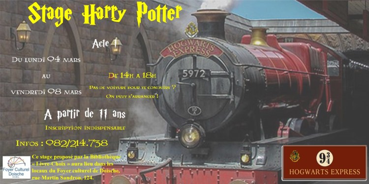 Stage Harry Potter (du 4 au 8 mars 2019) Publié parscopienne15 janvier 2019Publié dansBibliothèque J’aime chargement… Sur le même thème Publié par scopienne Bibliothécaire-animatrice à la bibliothèque "Livre-Choix" du Foyer culturel de Doische Voir plus d’articles