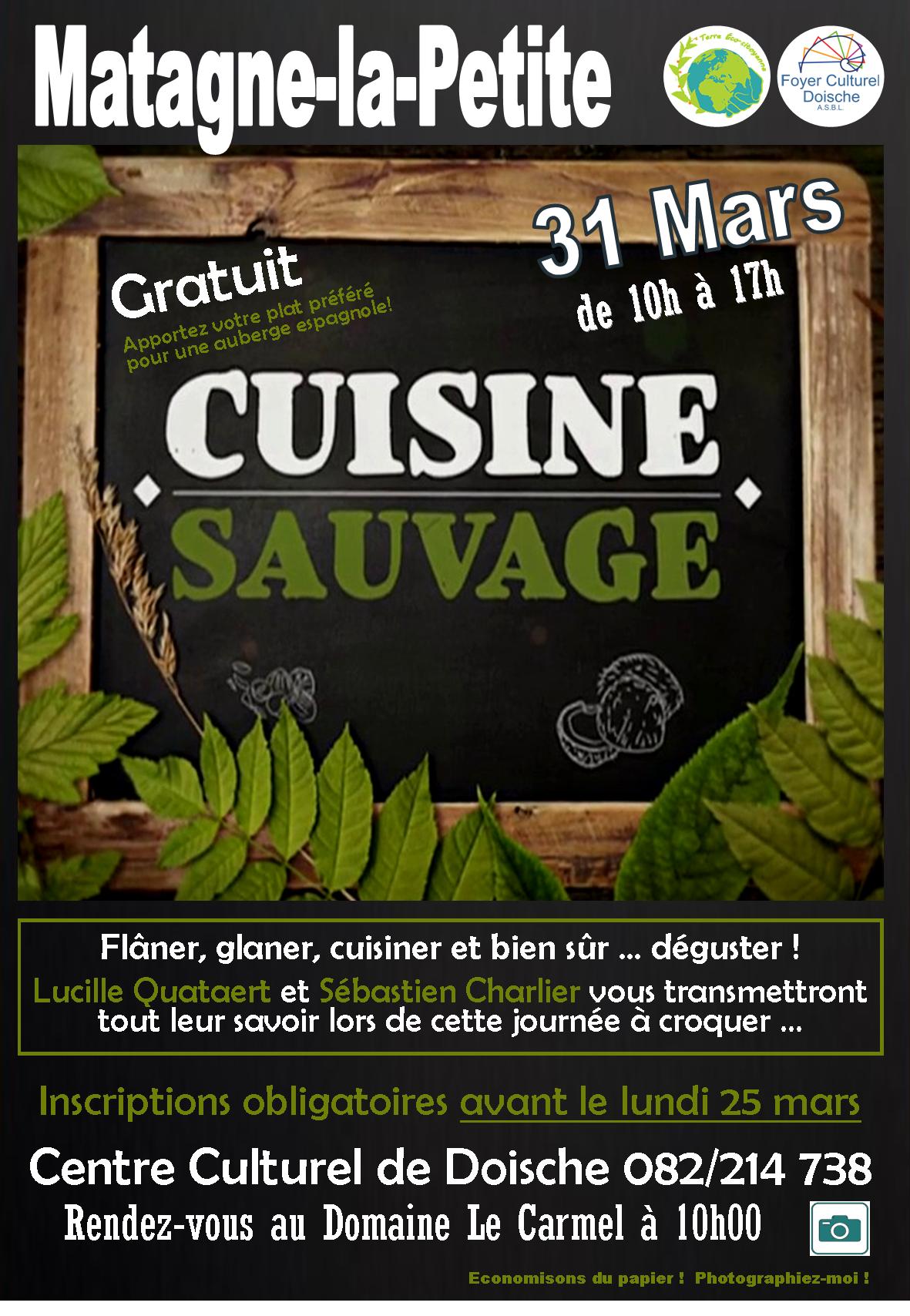 Cuisine Sauvage (31/03/2019) Publié parscopienne11 février 2019Publié dansAnimations, Évènements, Stages & Ateliers, Centre culturel J’aime chargement… Sur le même thème Publié par scopienne Bibliothécaire-animatrice à la bibliothèque "Livre-Choix" du Foyer culturel de Doische Voir plus d’articles