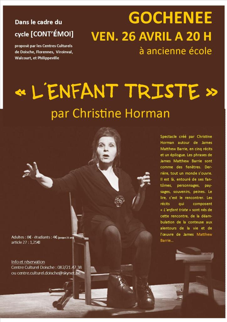 CONT’émoi : « L’enfant triste » par Christine Horman (26/04/2019) Publié parscopienne12 mars 2019Publié dansAnimations, Évènements, Stages & Ateliers, Centre culturel J’aime chargement… Sur le même thème Publié par scopienne Bibliothécaire-animatrice à la bibliothèque "Livre-Choix" du Foyer culturel de Doische Voir plus d’articles