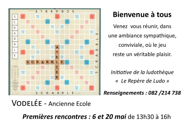 Atelier Scrable (06/05/2019 et 20/05/2019) Publié parscopienne8 avril 2019Publié dansAnimations de Ludo, Ludothèque J’aime chargement… Sur le même thème Publié par scopienne Bibliothécaire-animatrice à la bibliothèque "Livre-Choix" du Foyer culturel de Doische Voir plus d’articles