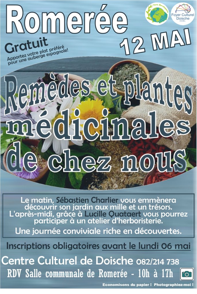 Juste une petite précision concernant cet atelier car la description peut induire en erreur : il ne s’agira pas d’un atelier culinaire l’après-midi. L’atelier étant consacré aux plantes médicinales, nous ne confectionnerons pas « des délices sains et goûteux ». Il s’agira plutôt d’un atelier d’herboristerie. Si c’est encore possible de modifier l’information sur Facebook ce serait chouette. C’est vraiment important de le préciser pour les gens qui souhaiteraient s’inscrire.