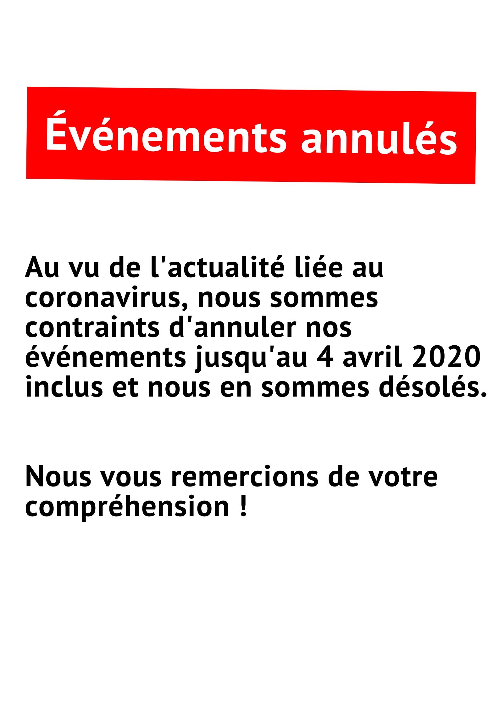 Événements annulés jusqu’au 4 avril inclus Publié parCentre culturel de Doische16 mars 2020Publié dansCentre culturel, Ludothèque J’aime chargement… Sur le même thème
