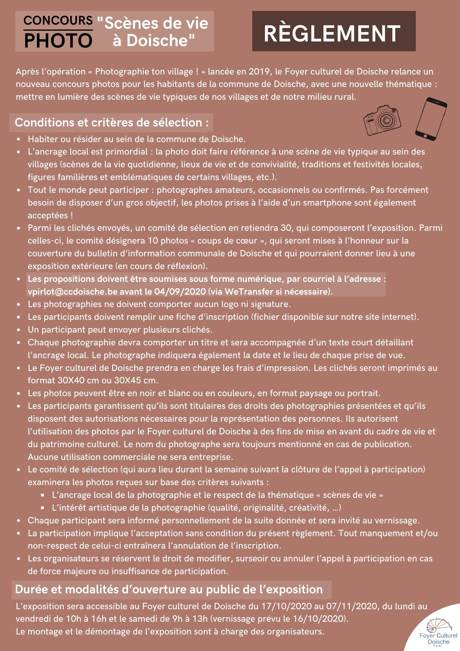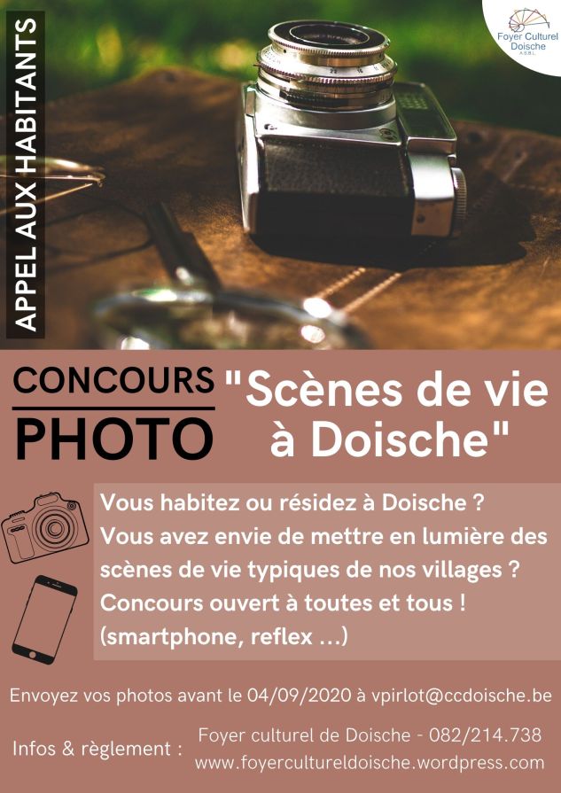 Concours Photo – « Scènes de vie à Doische » Publié parCentre culturel de Doische29 Mai 202029 Mai 2020Publié dansCentre culturel Pour télécharger la fiche d’inscription en format PDF, cliquez ici Pour télécharger la fiche d’inscription en format Word, cliquez ici J’aime chargement… Sur le même thème