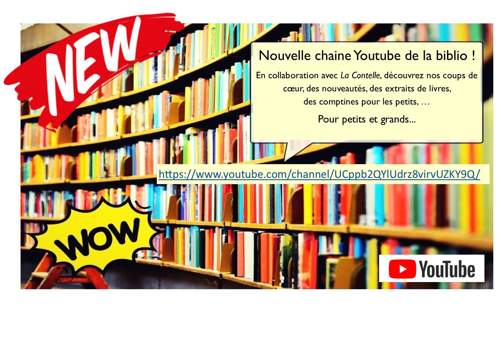 Nouvelle chaîne Youtube de la bibliothèque ! Publié parCentre culturel de Doische2 juillet 2020Publié dansBibliothèque Cliquez ici : https://www.youtube.com/channel/UCppb2QYlUdrz8virvUZKY9Q/ J’aime chargement… Sur le même thème
