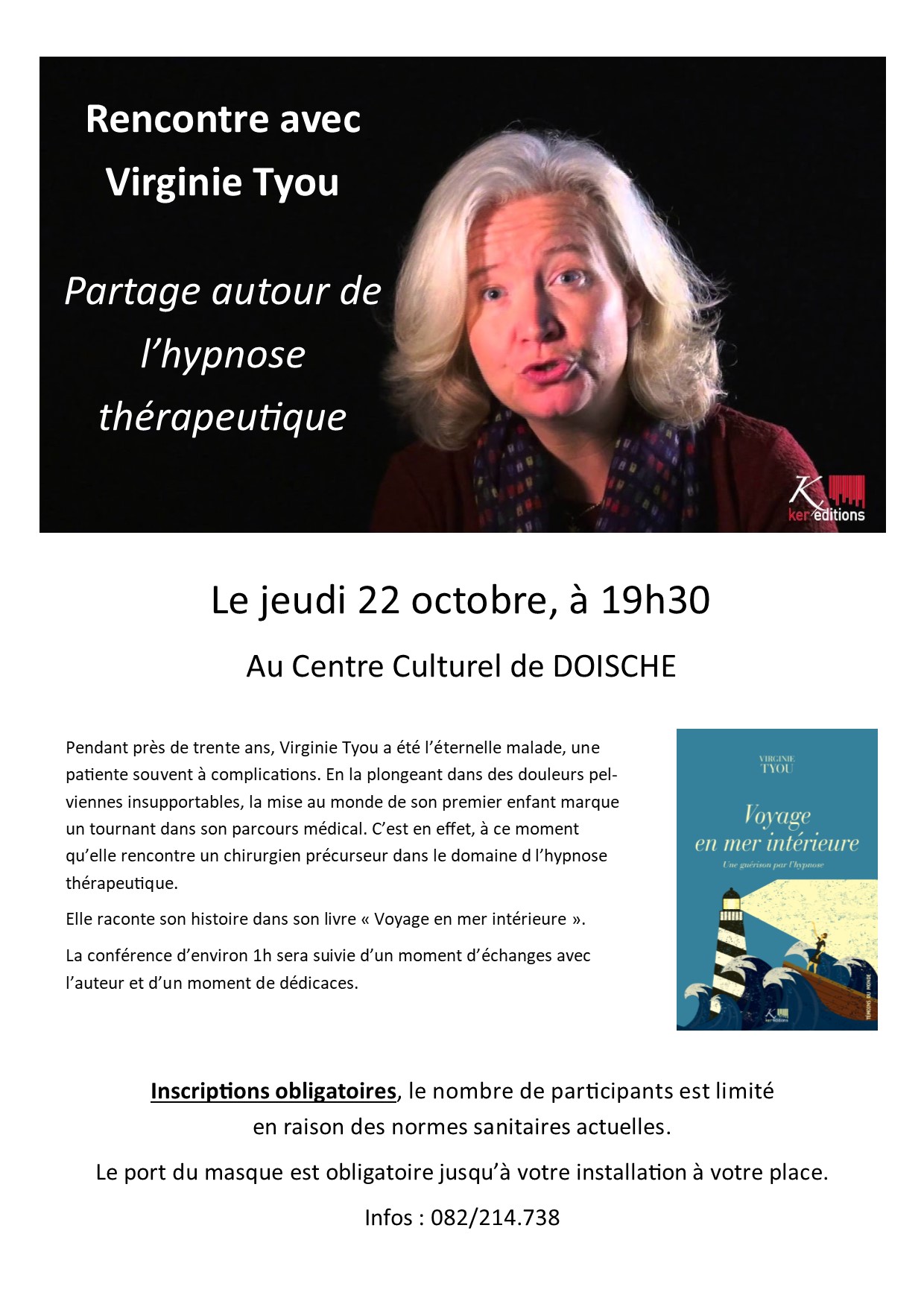 Rencontre avec Virginie Tyou – Partage autour de l’hypnose thérapeutique : 22/10/2020 Publié parCentre culturel de Doische15 septembre 2020Publié dansBibliothèque, Nouveautés J’aime chargement… Sur le même thème