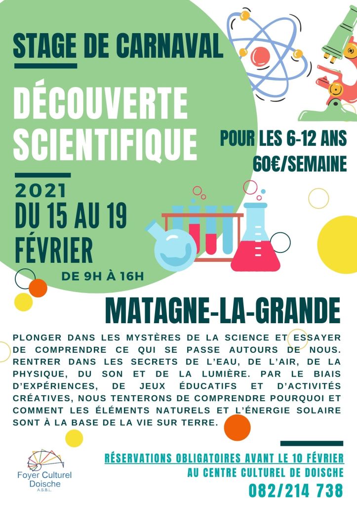 Stage de Carnaval Publié parCentre culturel de Doische8 janvier 2021Publié dansBibliothèque J’aime chargement… Sur le même thème