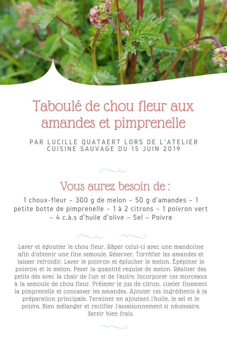 Taboulé de chou fleur aux amandes et pimprenelle